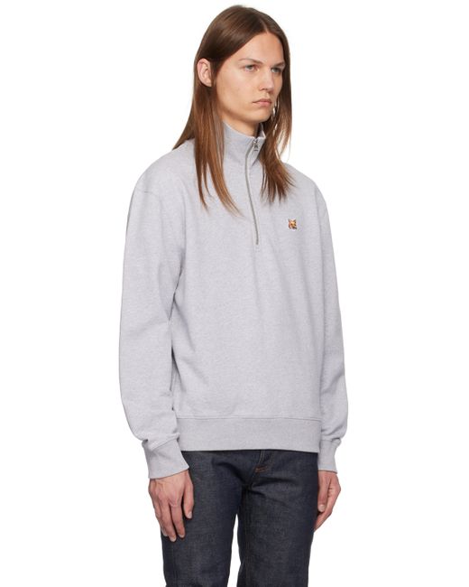 Fox Head Patch Half Zip Sweatshirt da Men di colore Grigio