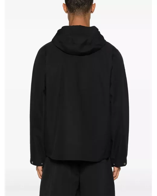 black shell water-repellent front two-way zip fastening slouchy hood funnel neck raised logo detail long raglan sleeves press-stud fastening cuffs eyelet vents two side zip-fastening pockets full lining drawstring hem