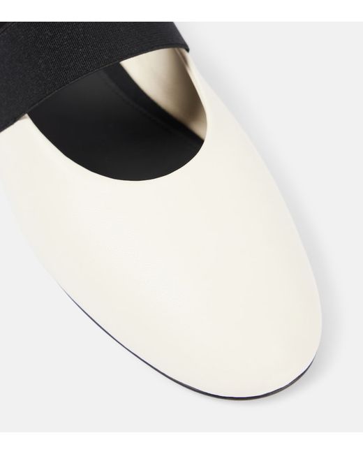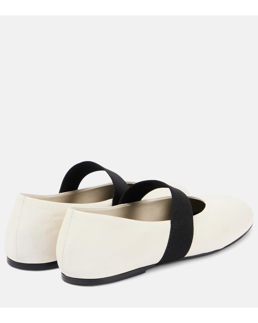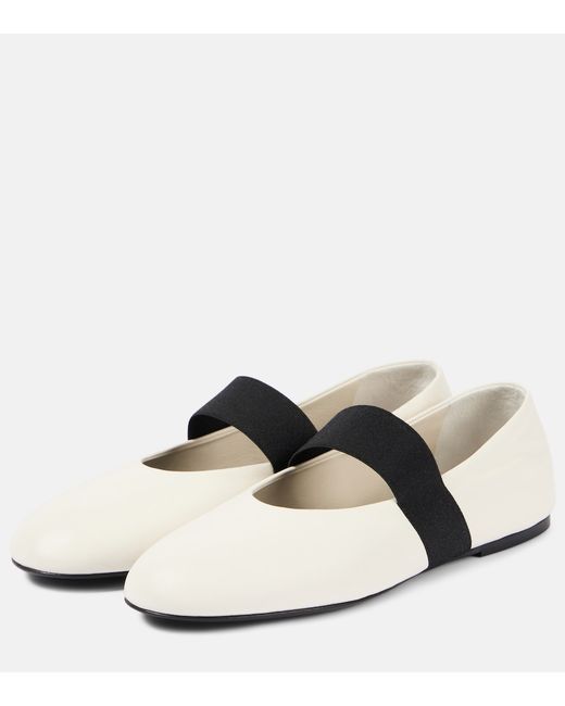 Tomaia: pelle di agnello. Rivestimento: pelle. Suola: soletta in pelle, suola in cuoio. Punta: punta tonda. Made in Italy. Include: sacca protettiva, scatola per scarpe. Colore del designer: Ivory. Chiusura: cinturino elastico.