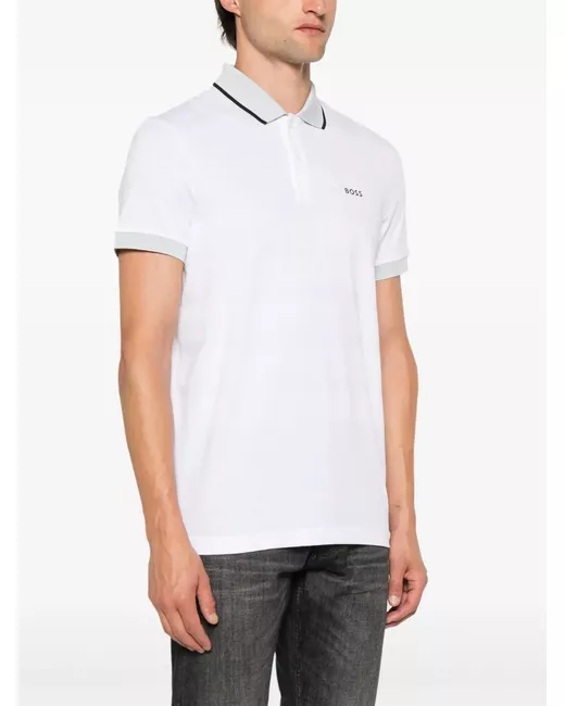 bianco cotone trama jersey effetto popcorn bordo a contrasto motivo a righe orizzontali orlo a righe dettaglio con logo in rilievo colletto stile polo falsatura frontale con abbottonatura maniche corte con bordi a coste orlo dritto