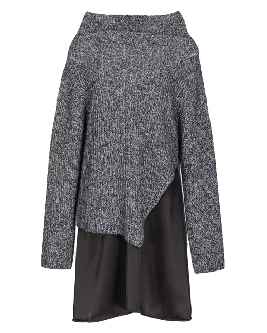 nero/grigio effetto design a più strati maglia chunky collo alto maniche lunghe design a portafoglio orlo dritto
