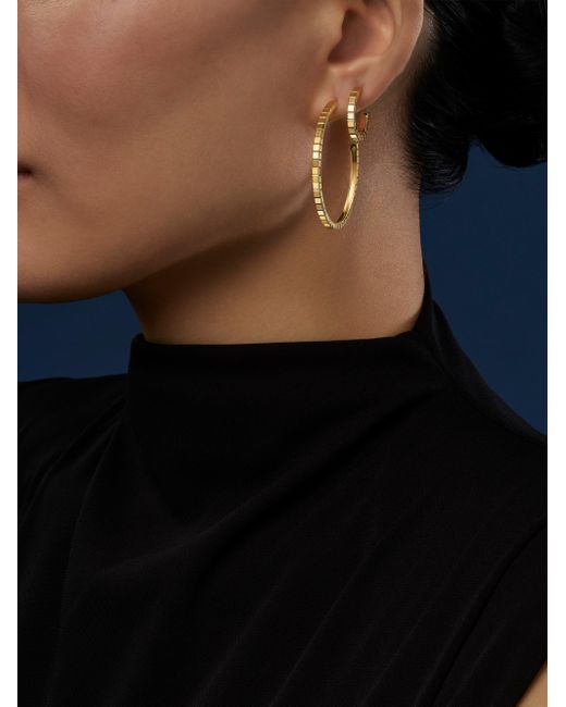 From the Ice Cube Collection. Comprised of polished 18K yellow gold cubes, Chopard's striking hoop earrings reflect the light. 18K yellow gold Post back Made in Switzerland SIZE About 1.65" diameter ABOUT THE BRAND In 1860, artisan watchmaker Louis-Ulysse Chopard founded the renowned jewelry brand in Sonvilier, Switzerland. The company is known for its legendary Swiss watches and classic high fine jewelry designed to last a lifetime. Fine Jewelry - Chopard Watches And Jewe > Chopard > Saks Fifth Avenue > Barneys. Chopard. Color: Yellow Gold.