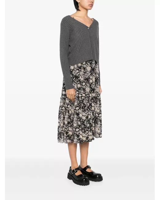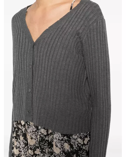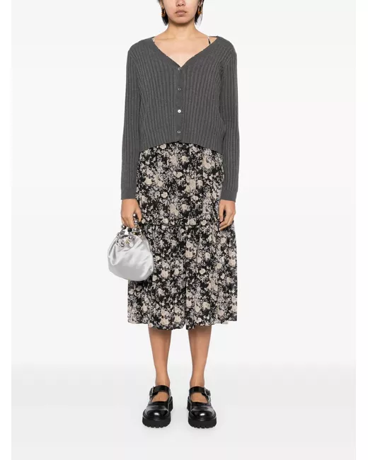 cardigans smoke grey button fastening ribbed design V-neck long sleeves straight hem dress all-over floral print buckle-detail shoulder strap ruffled detailing