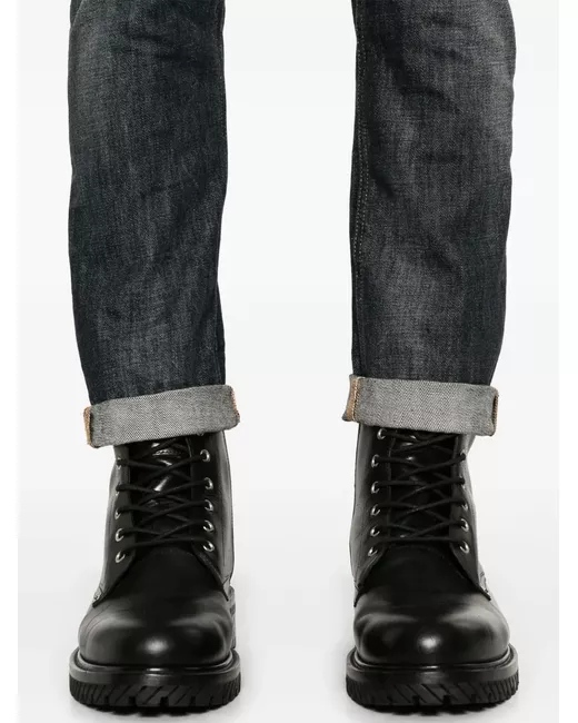 indaco misto cotone denim con effetto schiarito effetto vissuto chiusura con bottoni passanti design classico a cinque tasche stampa con logo sul retro taglio slim