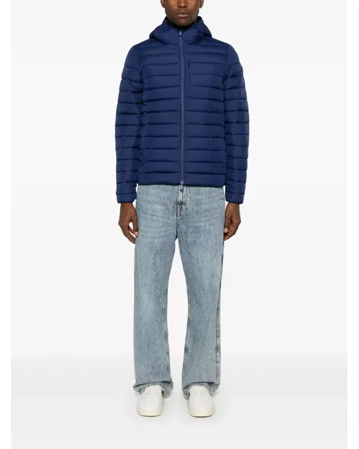 royal blue recycled polyester signature PLUMTECH® padding quilted front two-way zip fastening stand-up collar classic collar logo patch at the sleeve long sleeves zip-fastening chest pocket two side zip-fastening pockets elasticated waistband with internal drawstring straight hem