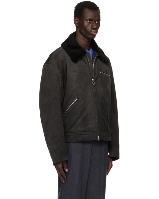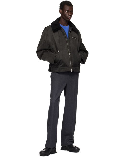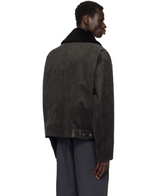 Peached cotton twill jacket. · Cracked lambskin spread collar · Two-way zip closure · Zip pockets · Adjustable press-stud barrel cuffs · Leather logo patch and adjustable press-stud tabs at back hem · Welt pockets at interior · Full twill lining Detachable down-filled quilted nylon taffeta jacket. · Wool fleece spread collar · Patch pocket at interior Fill 1: 100% polyester. Fill 2: 90% goose down, 10% goose feather.