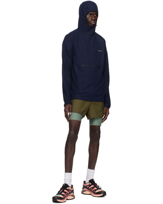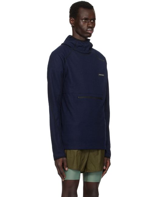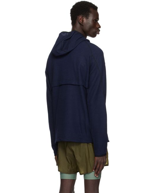 Navy Hooded Running Midlayer Zip Hoodie da Uomo di colore Blu