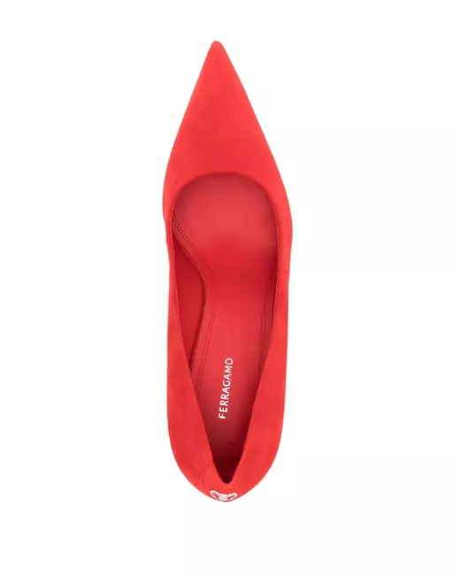 cardinal red calf suede slip-on style 70mm mid heel Gancini plaque pointed toe branded leather insole leather sole