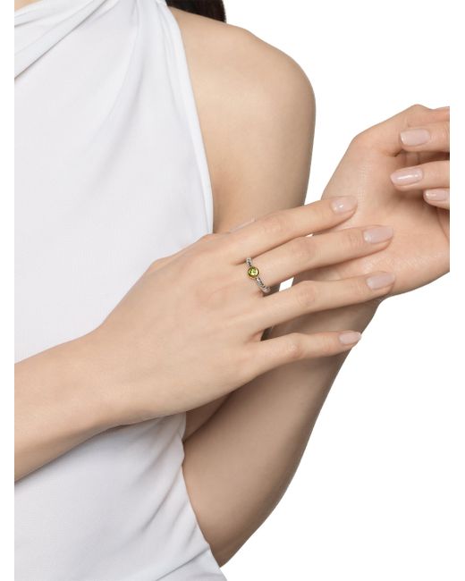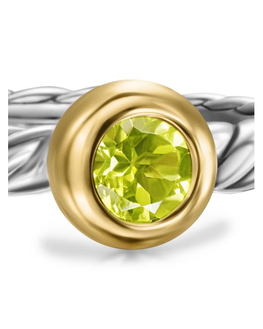 David Yurman's iconic Cable motif beautifully adorns a universal symbol or shape, creating a modern talisman meant to be collected, combined and treasured. Sterling silver with 14-karat yellow gold Ring, 2.8mm Stone, 4mm Imported ABOUT THE BRAND David, a sculptor, and his wife, Sybil, a painter, launched their innovative jewelry brand in 1980 in New York City. Since then, the American design house has pioneered cutting-edge collections-from its iconic combination of sterling silver and diamonds to signature pinky rings. Today, with their son Evan, the Yurmans continue to deliver timeless pieces inspired by nature, art, ancient symbols and Manhattan's stunning architecture. Lsd Jewelry - David Yurman > David Yurman > Saks Fifth Avenue > Barneys. David Yurman. Color: Peridot. Size: 8.