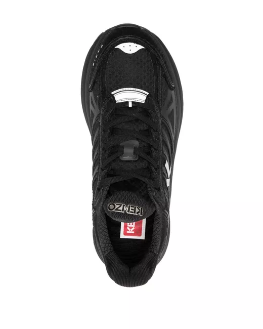 Design a inserti, applicazione laterale con logo, applicazione con logo sulla linguetta, punta tonda, chiusura frontale con lacci, soletta con logo e suola chunky in gomma.