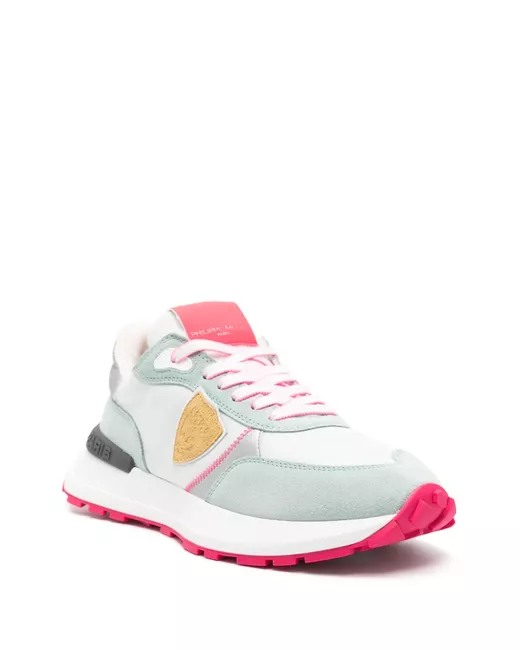 Fucsia, multicolore, design a inserti, pannelli in pelle scamosciata, applicazione laterale con logo, applicazione con logo sulla linguetta, logo goffrato sul retro, cuciture decorativa, punta tonda, chiusura frontale con lacci, soletta con logo e suola in gomma.
