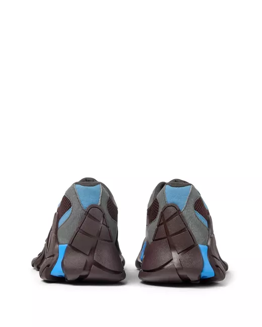 blue/grey faux leather mesh panelling contrasting panel detail round toe off-centre front fastening branded insole chunky rubber sole OrthoLite cushioning