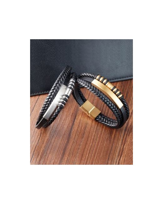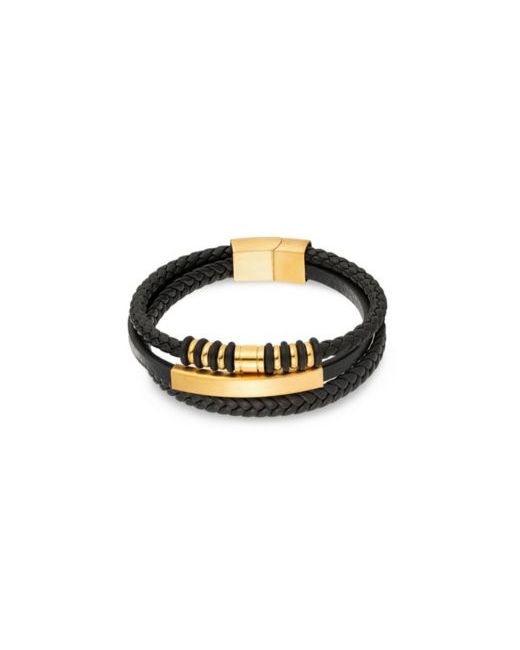 Multi Leather Black Identification Bracelet da Men di colore D'oro