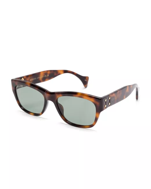 Havana brown acetate tortoiseshell effect square frame green tinted lenses UV-protective lenses UV protection hinge detailing logo-engraved arm oversize arms curved tips These glasses come with a protective case.