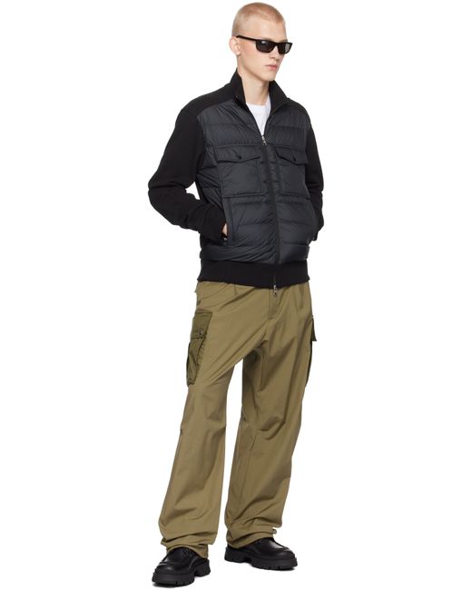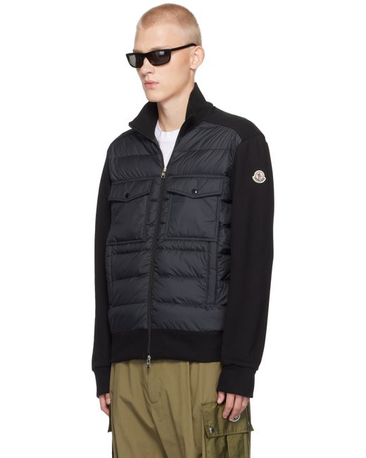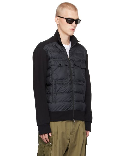DIST-certified down-filled and quilted polyester satin and French terry jacket. · Paneled construction · Stand collar · Two-way zip closure · Flap and welt pockets · Rib-knit hem and cuffs · Felted logo patch at sleeve · Partial satin lining Supplier color: Black Fill: 90% goose down, 10% feather.