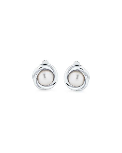 Traditional design with a feel - These splendid clip-on earrings are perfect for non-pierced ears. Featuring a luminous 10MM round white simulated pearl, they are elegantly encased in a cable twist frame setting. Pearls are for June Birthdays.