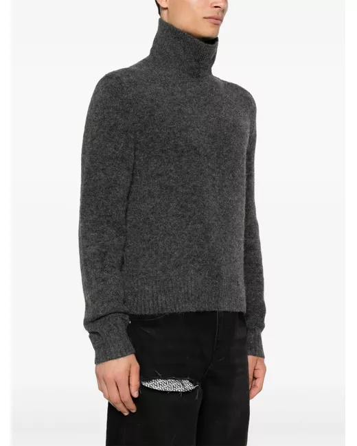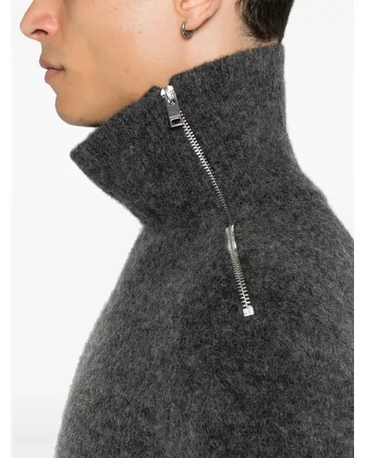 dark grey alpaca wool-blend knitted construction stand-up collar long sleeves ribbed cuffs and hem straight hem shoulder zip fastening