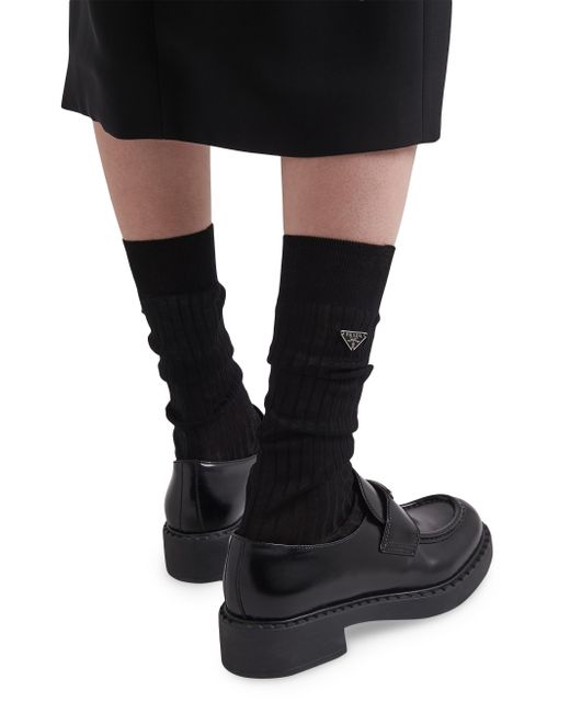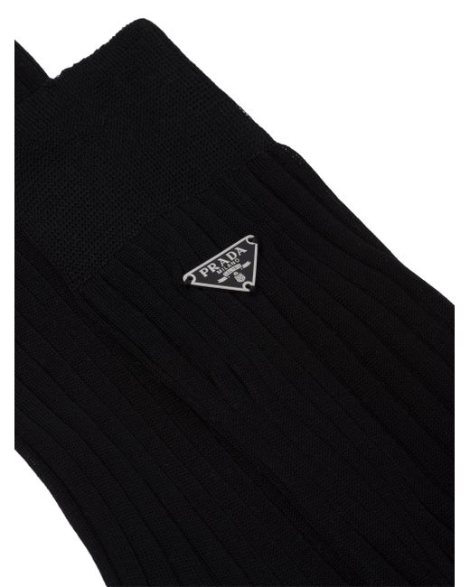 Fine ribbing decorates these mid-calf cotton socks. The enameled metal triangle logo stands out on the side, adding an iconic note to the socks. Ribbed knit Enameled metal triangle logo 100% Cotton Made in Italy. Lsd Rtw - Prada Rtw > Prada > Saks Fifth Avenue > Barneys. Prada. Color: Black. Size: 4.