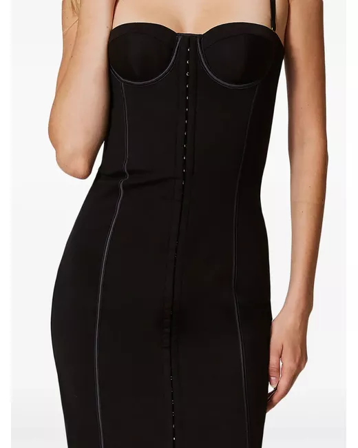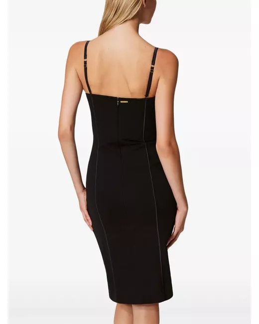 nero design elasticizzato scollo stile bustino chiusura posteriore con zip nascosta chiusura a gancio due tracolle rimovibili coppe con ferretto lunghezza sotto al ginocchio