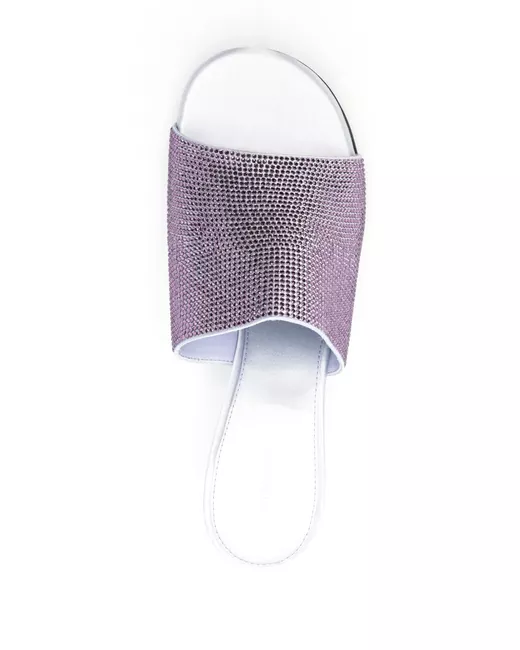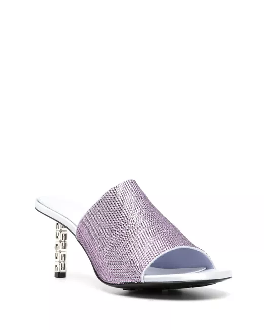 lavender purple calf leather signature 4G motif rhinestone embellishment open toe branded insole slip-on style high sculpted heel