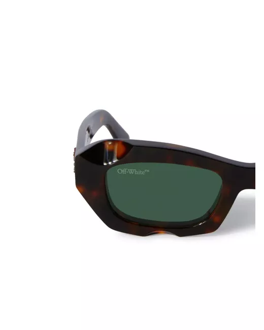 Havana brown acetate tortoiseshell effect signature Arrows motif lens decal rectangle frame green tinted lenses UV-protective lenses straight arms curved tips These glasses come with a protective case.