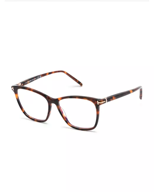 brown acetate tortoiseshell effect rectangle frame clear lenses logo-engraved arm straight arms curved tips All glasses from FARFETCH are sold as non-prescription frames. These glasses come with a protective case.