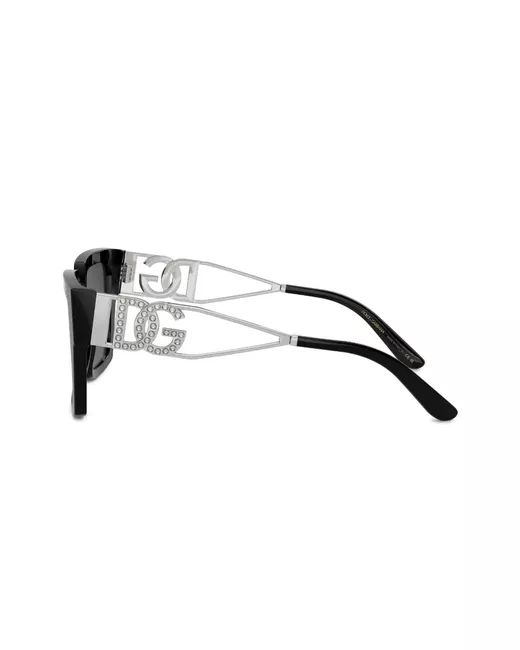 black acetate square frame grey tinted lenses logo plaque at the arm crystal embellishment sculpted arms curved tips These glasses come with a protective case.