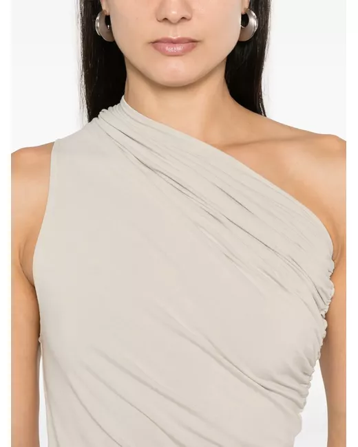 sand beige stretch-design one-shoulder draped detailing gathered detailing no lining straight hem