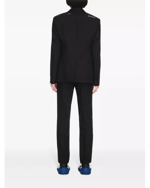 black cotton concealed front fastening belt loops logo print to the side pleat detailing two side slit pockets slim cut