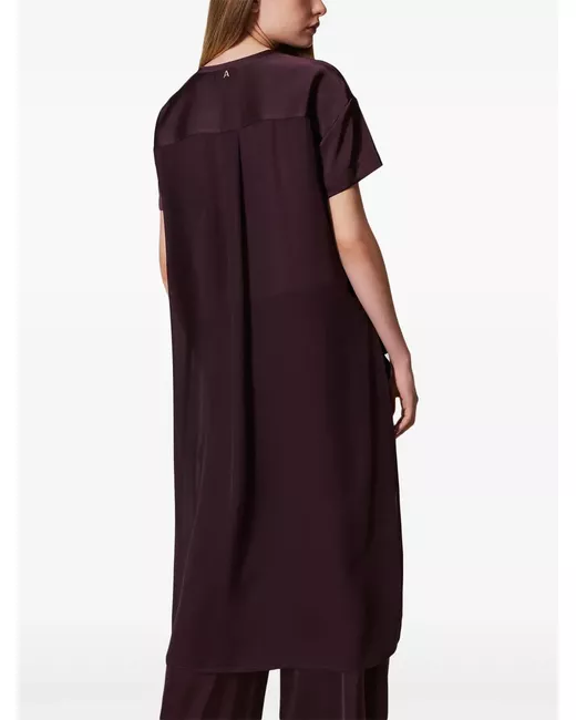 dark purple satin finish logo charm round neck high-low hem straight hem