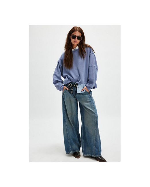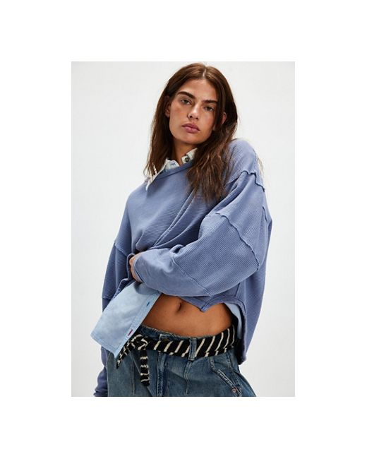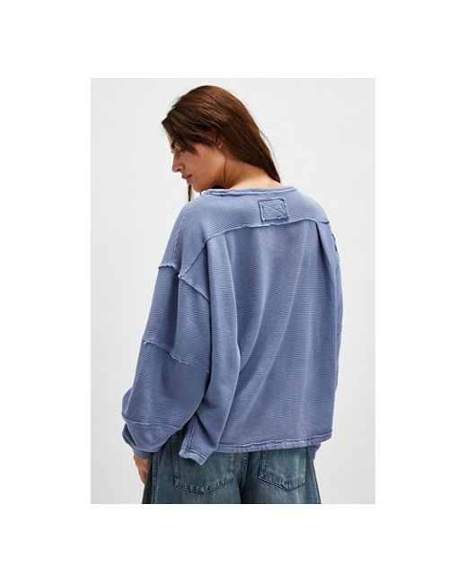 An elevated take on the classic tee, this long-sleeve from our We The Free collection features a ribbed fabrication and slouchy silhouette with defined seams and a scoop-neckline. **Fit:** Slouchy, oversized fit **Features:** Ribbed fabrication, scoop-neckline, drop-shoulder sleeves with cuffs, defined seam detailing with raw trim **Why We ❤ It:** This timeless top is perfect for layering up and down no matter the season. We The Free Total Eclipse Tee at Free People in Prep Peri, Size: XS