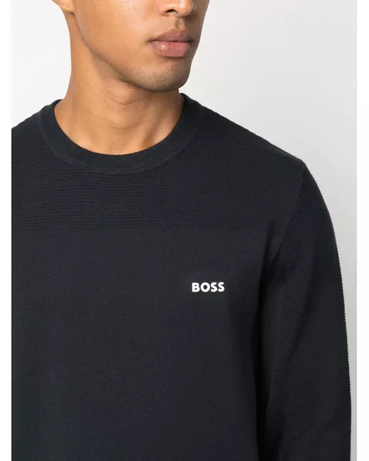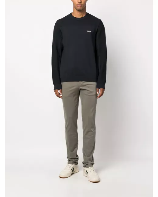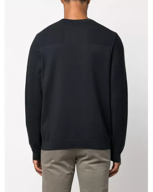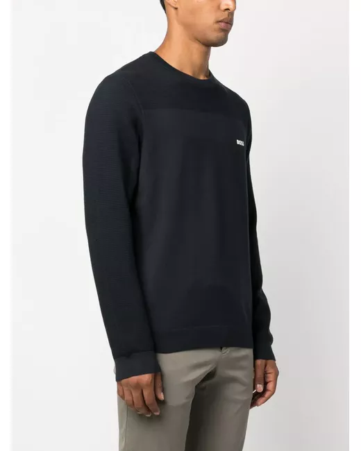 blue knitted construction logo patch to the front round neck long sleeves straight hem