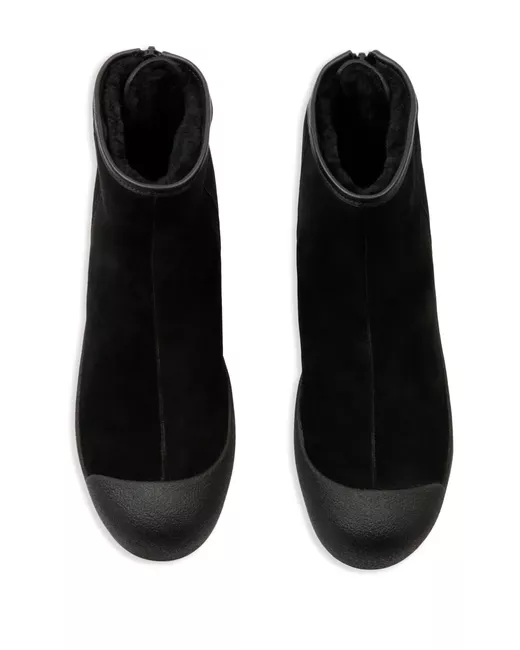 nero pelle di vitello scamosciata chiusura posteriore con zip stampa con logo laterale lunghezza alla caviglia punta in gomma punta tonda soletta in pelle con logo suola in gomma VIBRAM