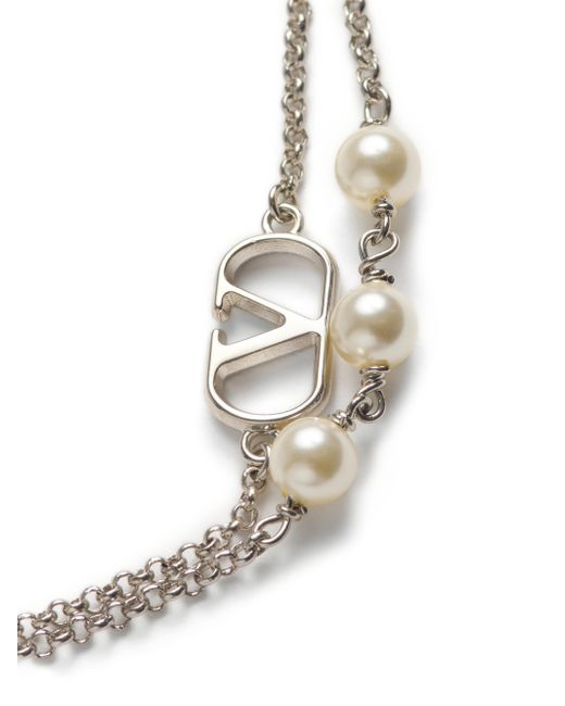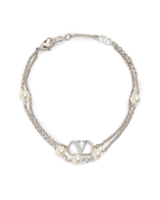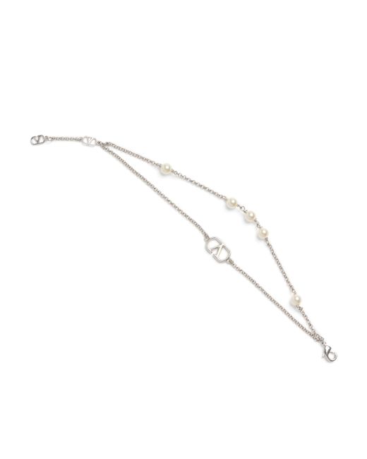 VLogo signature bracelet in metal and Swarovski pearls. Palladium-tone finish Double chain with VLogo and pearl detail VLogo Signature dimensions: 15 x 9 mm / 0.59 x 0.35 in Pearl diameter: 6 mm / 0.24 in Available in sizes S - M Size S: adjustable length from 16 to 18 cm / 6.3 to 7.1 in Size M: adjustable length from 18 to 20 cm / 7.1 to 7.9 in Snap hook closure Made in Italy. Lsd Rtw - Valentino Rtw > Valentino Garavani > Saks Fifth Avenue > Barneys. Valentino Garavani. Color: Palladium. Size: Small.