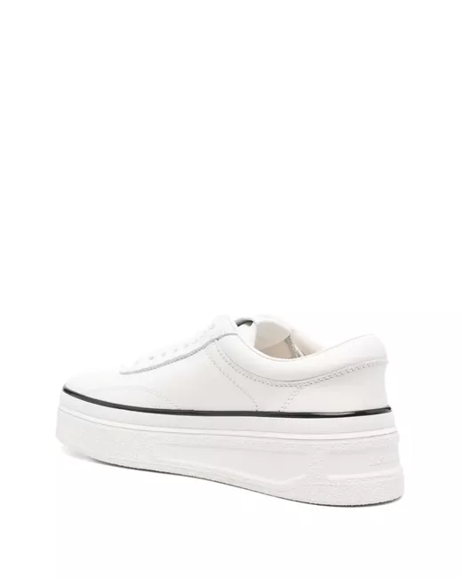 white calf leather tonal stitching platform sole front lace-up fastening perforated toebox round toe branded leather insole chunky rubber sole