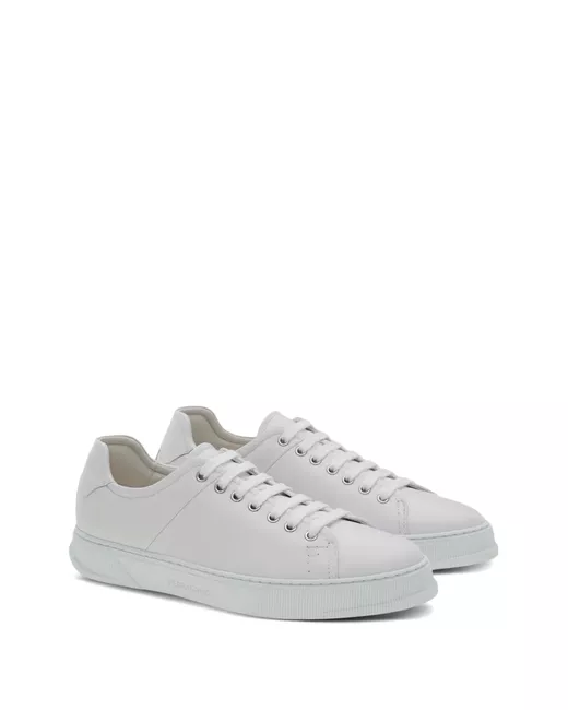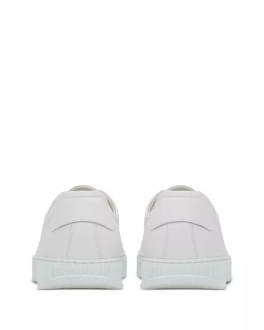 bianco pelle plantare con logo logo laterale inciso chiusura frontale con lacci punta tonda suola piatta in gomma