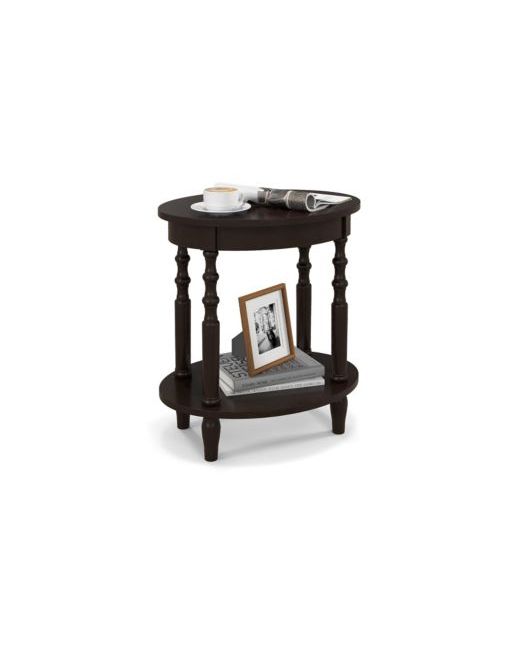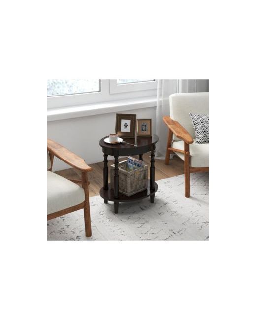 2 Pcs 2-Tier End Table Oval Compact Sofa Side Nightstand w Storage Shelf