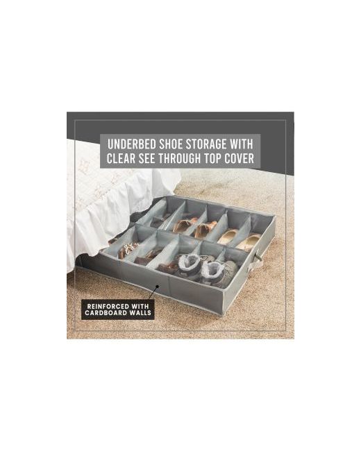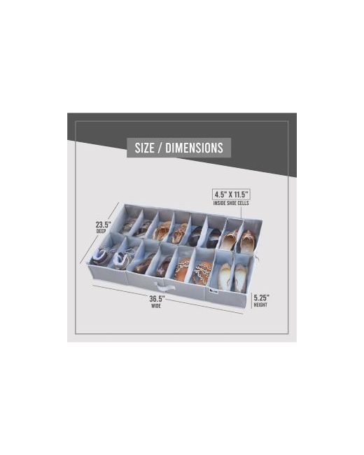 Transform your cluttered shoe collection into a neatly organized space with the Hold N' Stogate Extra-Large Under Bed Shoe Storage Organizer. Made from durable 600D tear-resistant material and sturdy cardboard walls, this organizer is designed for long-term use. It measures 36.5 inches wide, 23.5 inches deep, and 5.25 inches high, fitting up to 16 pairs of shoes, from high heels to sneakers. The transparent vinyl cover provides easy visibility, allowing you to find your shoes quickly. With three reinforced handles for easy access, this stylish and efficient storage solution is perfect for both short-term and seasonal organization.