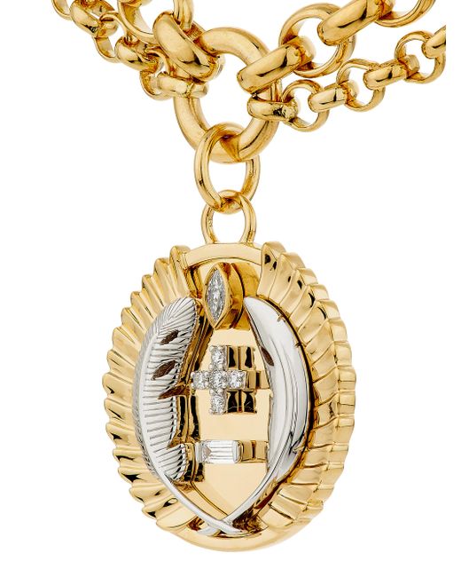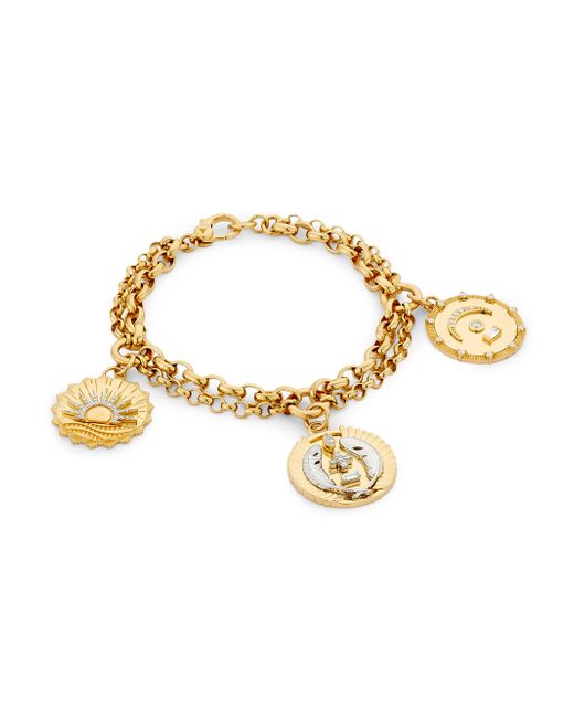 From the Internal Compass, Vivacity & New Beginnings Collection. Crafted of heavy mixed belcher chain, Foundrae's 18K yellow gold bracelet anchors three intricate charms accented with 18K white gold. Diamonds, 0.479 tcw Diamond clarity: VS1 18K yellow gold/18K white gold Lobster clasp Made in USA SIZE About 7"L ABOUT THE BRAND Foundrae takes inspiration from mythology and classical design to create elevated-yet-approachable necklaces, bracelets, rings and more-all in 18-karat gold. The fine jewelry label is known for its use of ancient symbols in its signature coin-like pendants, which blend a bold look with second-skin comfort. Each piece is a collectible in its own right and serves as an expression of personal identity. Fine Jewelry - Designer Jewelry A > Foundrae > Saks Fifth Avenue > Barneys. Foundrae. Color: Yellow Gold.