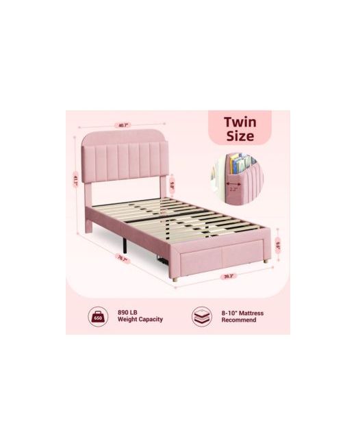Bed Frame with Storage Headboard : This twin bed frame features a spacious storage headboard, making it convenient for your child to store books, toys, and personal items, promoting a tidy and organized bedroom environment.