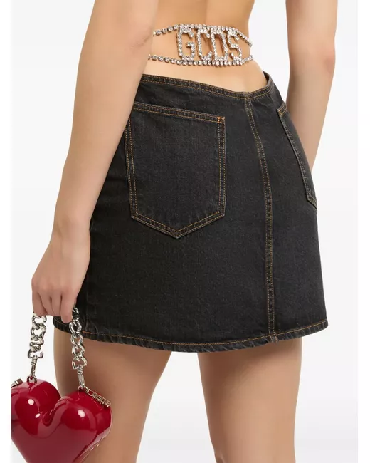 nero cotone denim chiusura frontale con bottoni e zip passanti design classico a cinque tasche decorazione in cristalli