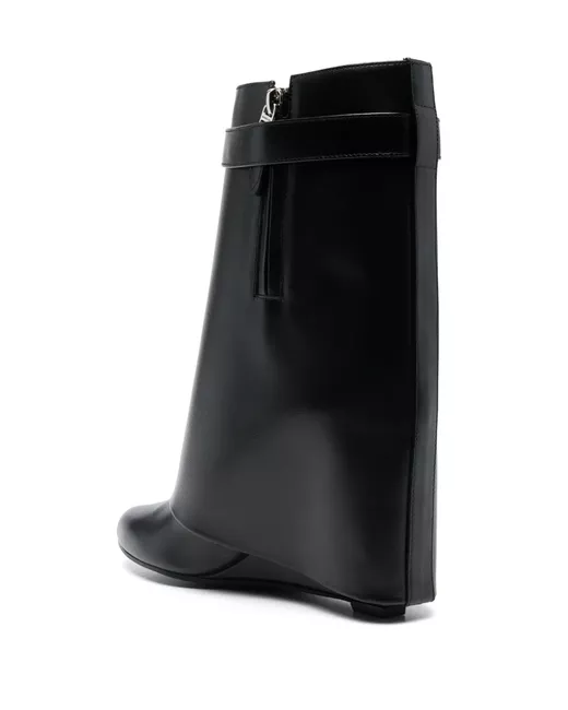 black calf leather smooth grain side zip fastening 90mm high wedge heel overlapping panel padlock detail signature 4G motif pointed toe branded insole leather sole This piece comes complete with a protective dust bag.