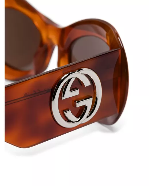 rust brown acetate transparent design oval frame tinted lenses UV-protective lenses lens decal signature Interlocking G logo oversize arms curved tips These glasses come with a protective case.