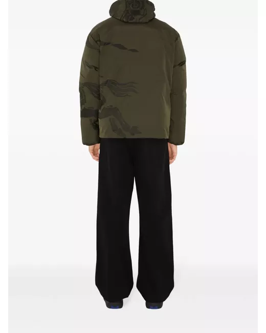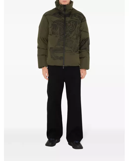 dark green padded design signature Equestrian Knight motif front zip fastening long sleeves two side zip-fastening pockets straight hem