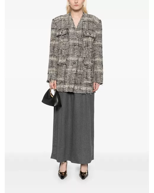 beluga grey wool-cashmere blend elasticated waistband with internal drawstring two side inset pockets rear jetted pocket rear slit