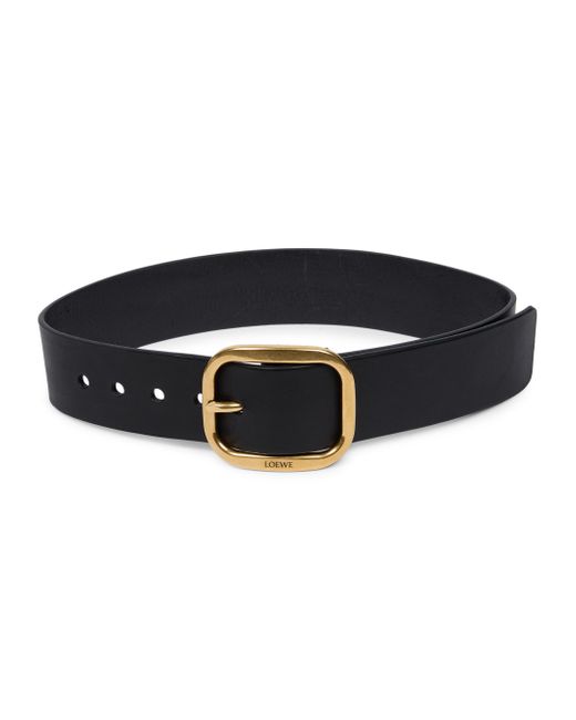 Crafted of Spanish leather, LOEWE's rounded belt showcased a gold-tone buckle. Gold-tone buckle Leather Made in Spain SIZE About 2" width. Soft Accessories - Belts > Loewe > Saks Fifth Avenue > Barneys. LOEWE. Color: Black Vintage Brass. Size: XS.