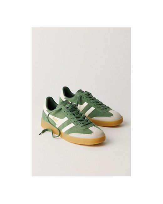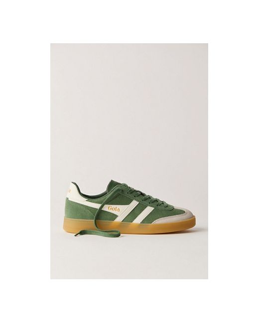 Elevate your casual looks with these terrace-inspired sneakers from Gola, featured in a T-toe style with contrasting leather overlays and a gum rubber outsole. *Featuring two FP exclusive colorways, **Evergreen** & **Orange!*** **Features:** Low-top style, leather uppers, T-toe construction, suede overlays, contrasting heel tab, lace-up closure, gum rubber outsole **Why We Gola Viper Leather Sneakers at Free People in Evergreen/Off White, Size: US 6