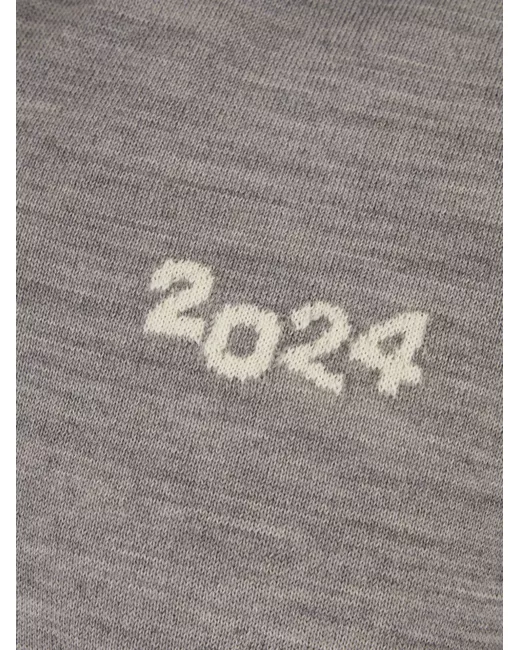 grigio lana effetto mélange colletto stile polo stampa con anno sul petto orlo e polsini a coste maniche lunghe