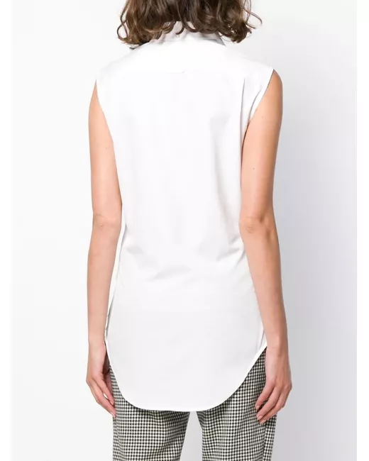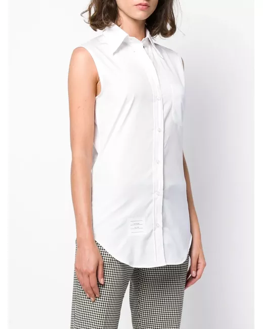 Camicia smanicata bianca di Thom Browne. Modello con colletto, chiusura a bottoni e orlo curvo.