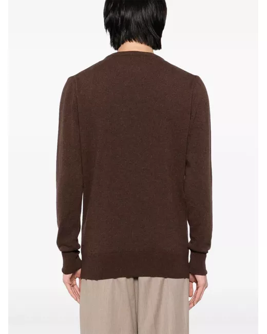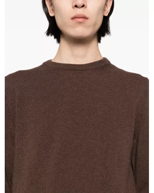 chocolate brown cashmere fine knit crew neck long sleeves ribbed cuffs and hem